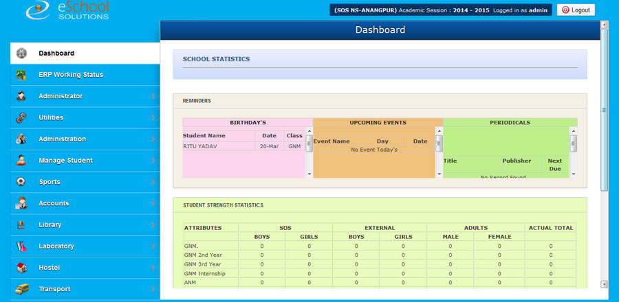 Donor Service Solution(DSS)/MIS is build on MySQL & User Interface is supported by HTML5.
